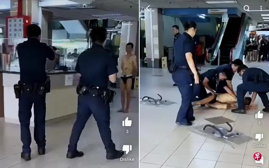 “内裤男”手持小刀,大闹惹兰苏丹商场,甚至挥刀自残,警方到场后制伏逮捕。