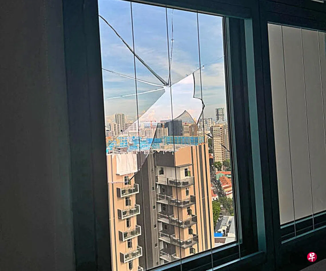 杨先生透露,他们住在顶楼,近期当局为组屋外墙展开粉刷工程,他怀疑窗户玻璃碎裂,或是因吊架(Gondola)撞击造成的。