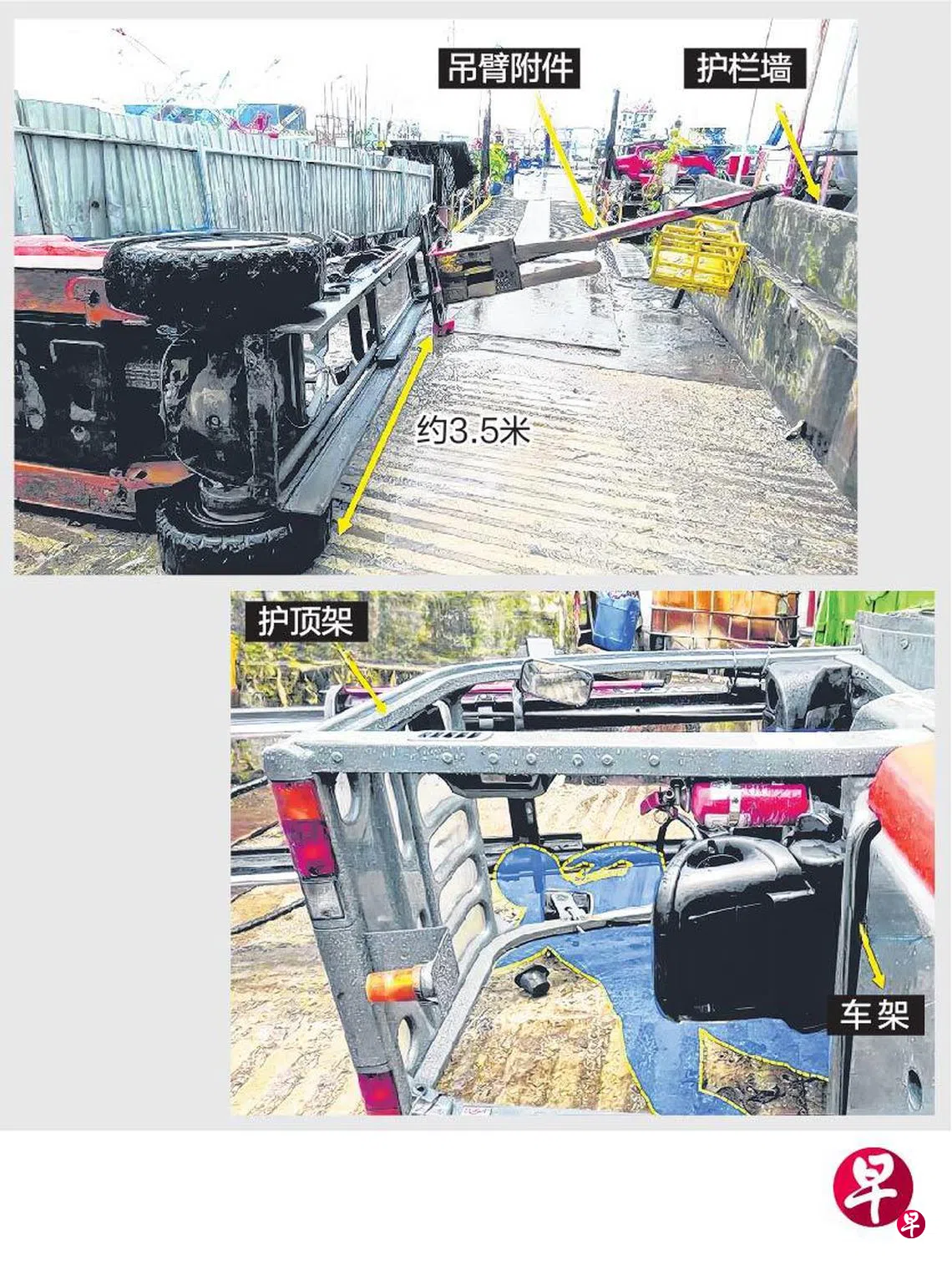 根据推测,法鲁克当时可能是为了躲避倒下的叉车,紧急跳下车位或是从车位被抛飞,结果,他就被叉车的护顶架砸死。
