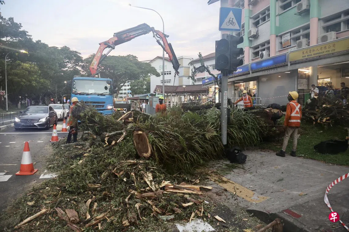 树倒后,当局立刻派人清理现场,在晚上8时30分将倒下的树木清理完毕,有人员也在现场修复交通灯。