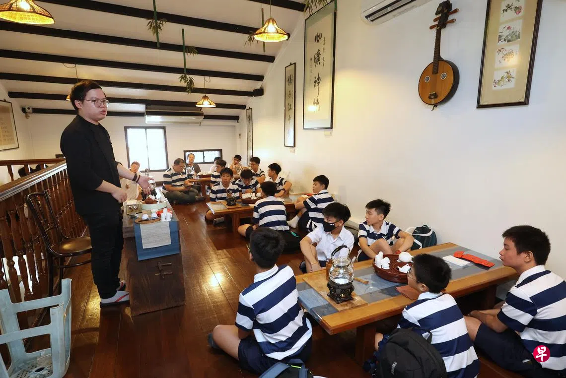 来自圣安德烈中学的杨家瑞(中二生,14岁)说,最让他印象深刻的是在茶渊的体验。“我们跟老师学习到了如何品茶和泡茶,例如泡茶前要先用热水温杯,喝茶前要先把茶倒入闻香杯,之后才能倒进品茗杯来喝。”