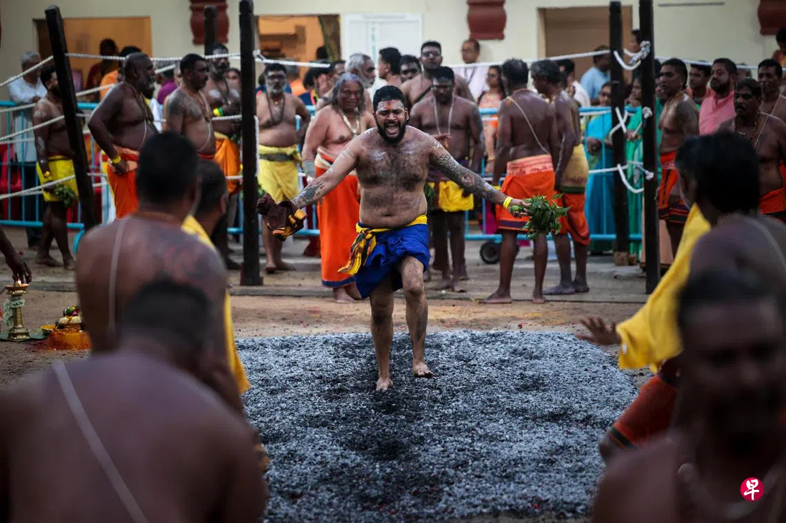 自19世纪中沿袭至今、每年一度的传统蹈火仪式,星期天在马里安曼兴都庙盛大举行。