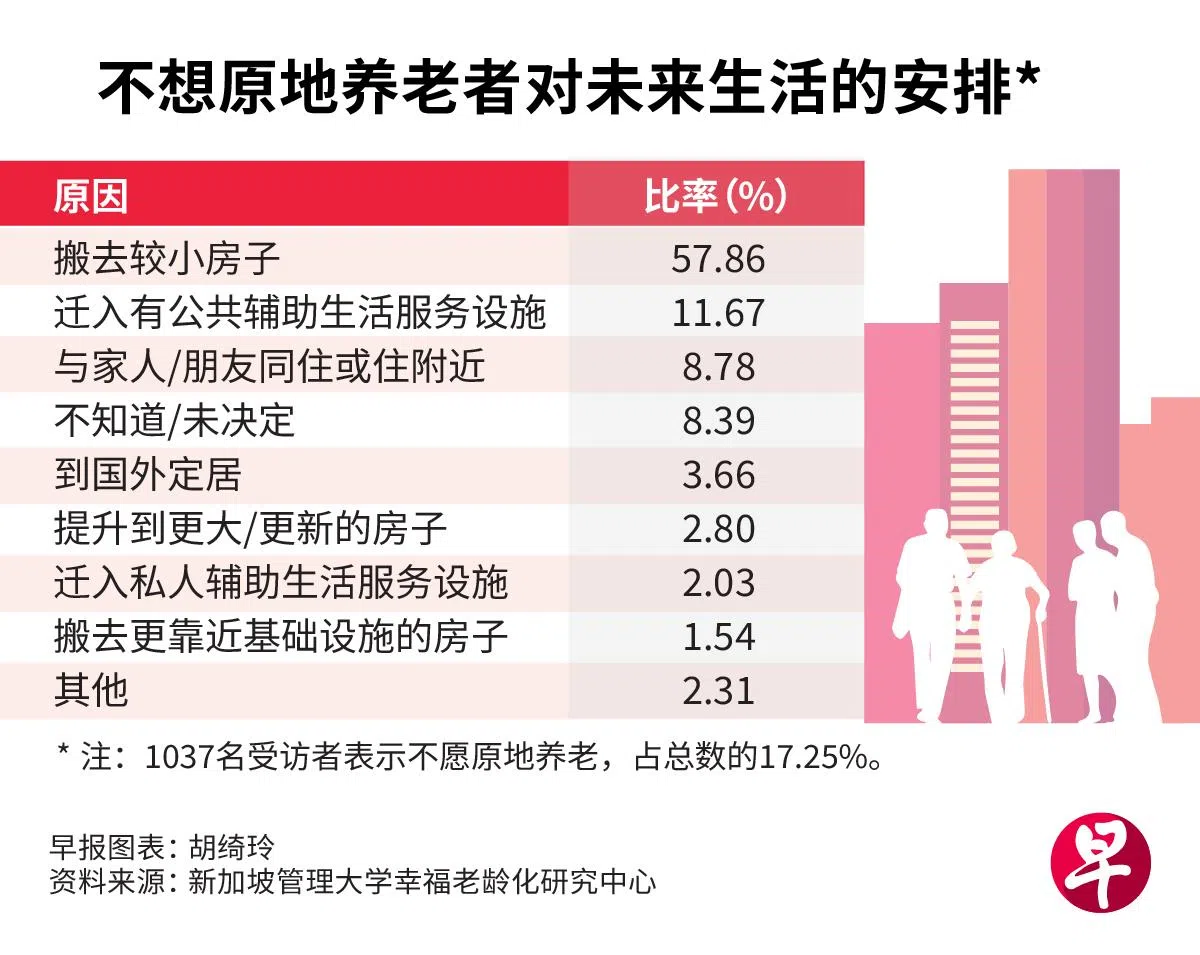 结果,多达82.75%的受访者表示,他们无意迁出现有住处,只有17.25%有意另寻养老地点。