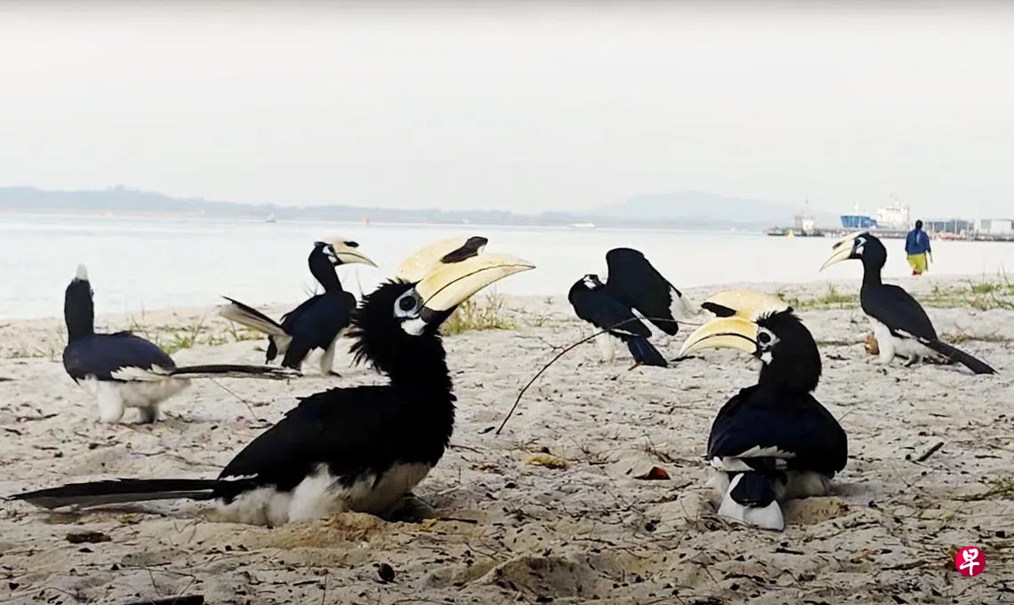 国家公园局在答复《联合早报》询问时说,犀鸟是群居鸟类,即使不处在繁殖期,也常成群出现。