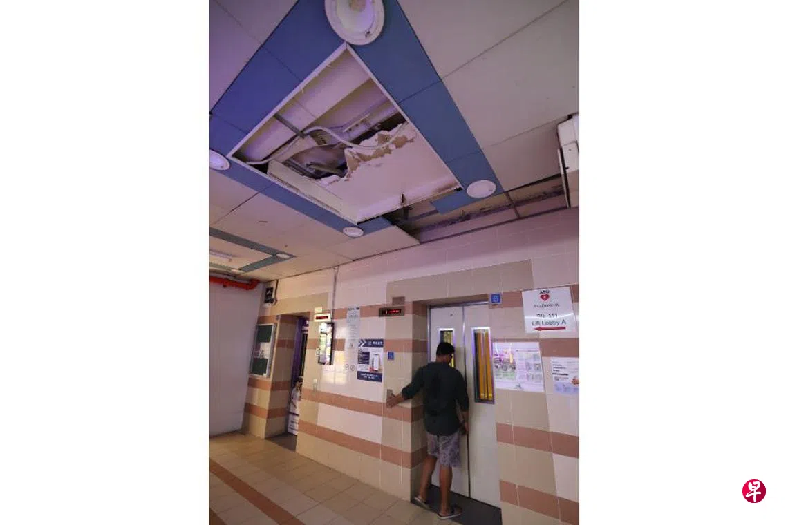 组屋走廊天花板突然松脱,大量疑是老鼠屎的黑色颗粒从天花板撒落地面。居民说经常听到老鼠在头顶上跑动,怀疑天花板是被老鼠踩塌的。市镇理事会已调派灭虫专家到场检查,天花板的修复工程会在月底前完成。