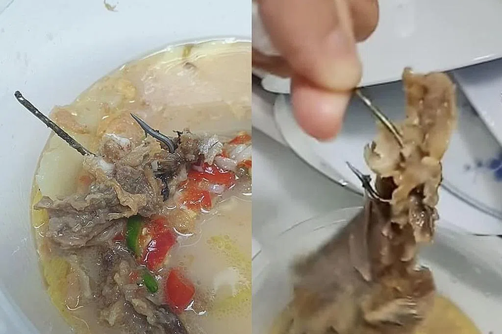 网民林先生告诉社媒Mustsharenews,他于10月18日带13岁儿子到勿洛转换站熟食中心(Bedok Interchange Hawker Centre)一家菜饭摊打包菜饭,儿子在用餐时吃到一枚生锈的螺丝钉。
