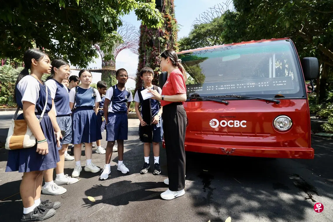 这些崭新的“绿色”车辆在滨海湾花园星期三(10月23日)举办的年度学生环保竞赛“Race to Sustainability”活动中首次亮相。华侨银行为太阳能驱动园区接驳车赞助100万元。