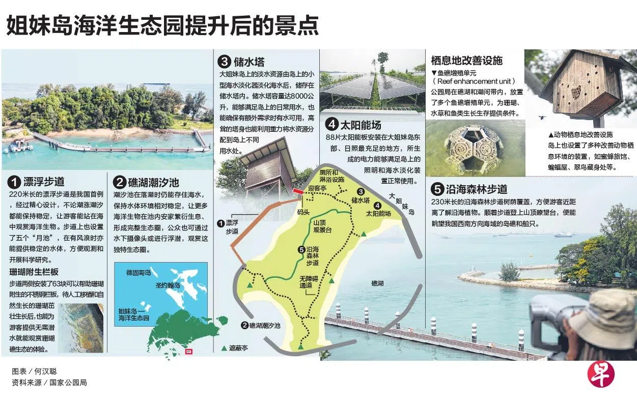 位于南部的姐妹岛海洋生态园历时三年的提升工程完成,新增了漂浮步道和沿海森林步道等多个景点,并于星期一(10月28日)正式重新开放。