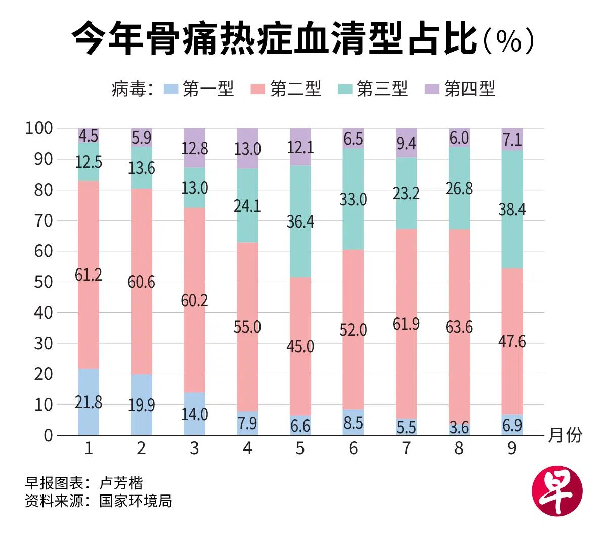 根据国家环境局在网站发布的最新数据,7月至9月的第三季里,本地共有2963起骨痛热症病例,比第二季减少27.6%,当中有两人因骨痛热症病逝;从1月至9月,骨痛热症死例总数已达到15起。