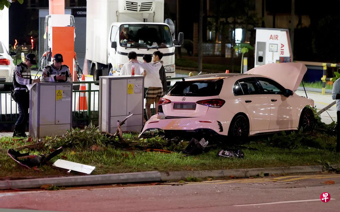 新加坡警察部队与新加坡民防部队受询时证实接获通报,指一辆汽车相信是自行打滑,24岁的男驾驶受轻伤,并由医护人员协助,但他拒绝送院。警方调查仍在进行中。