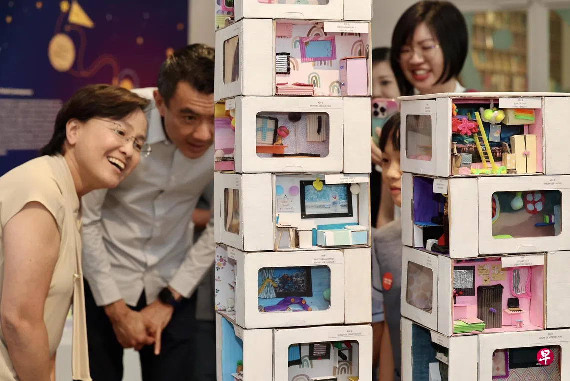 受本地艺术家黄慧莲(Dawn Ng)关于组屋走廊的作品的启发,每个学生都在独立的盒子空间里制作自己的 “梦想房间”,体现他们的身份认同和生活愿望。