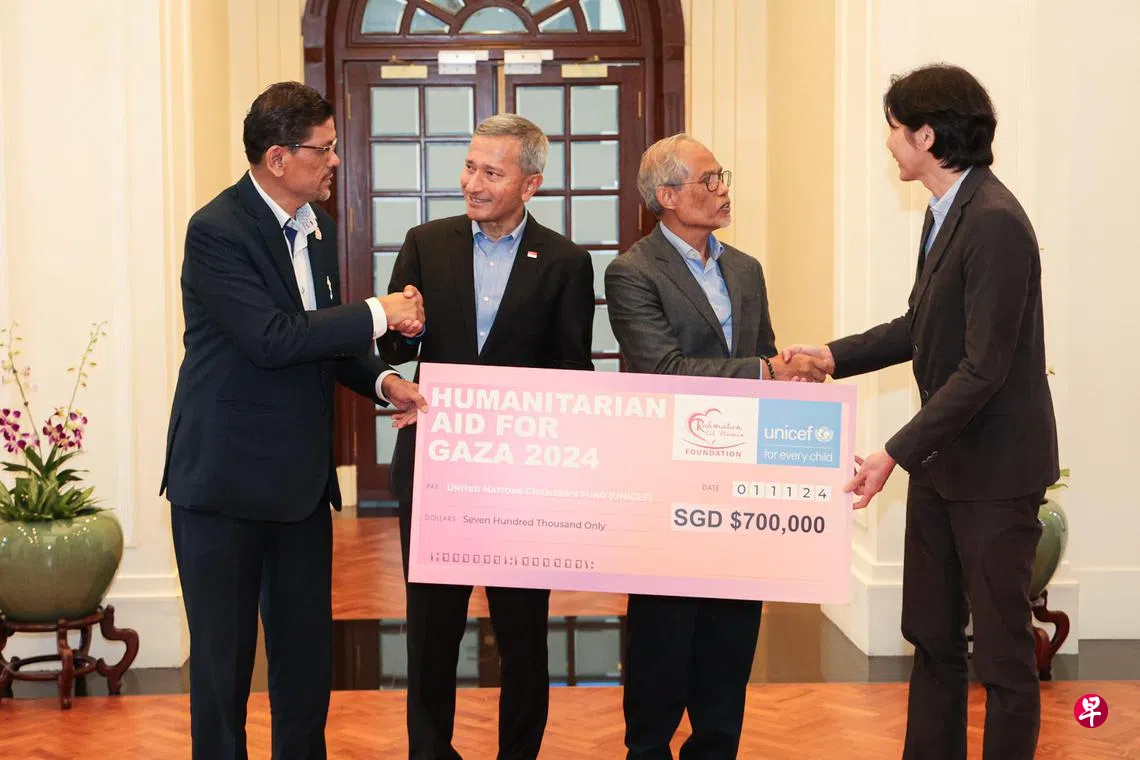 我国第五轮人道援助的70万新元捐款来自全福基金会(Rahmatan Lil Alamin Foundation)正在进行的加沙筹款活动,其中包括新加坡外交部提供的20万美元(约26万4700新元)。