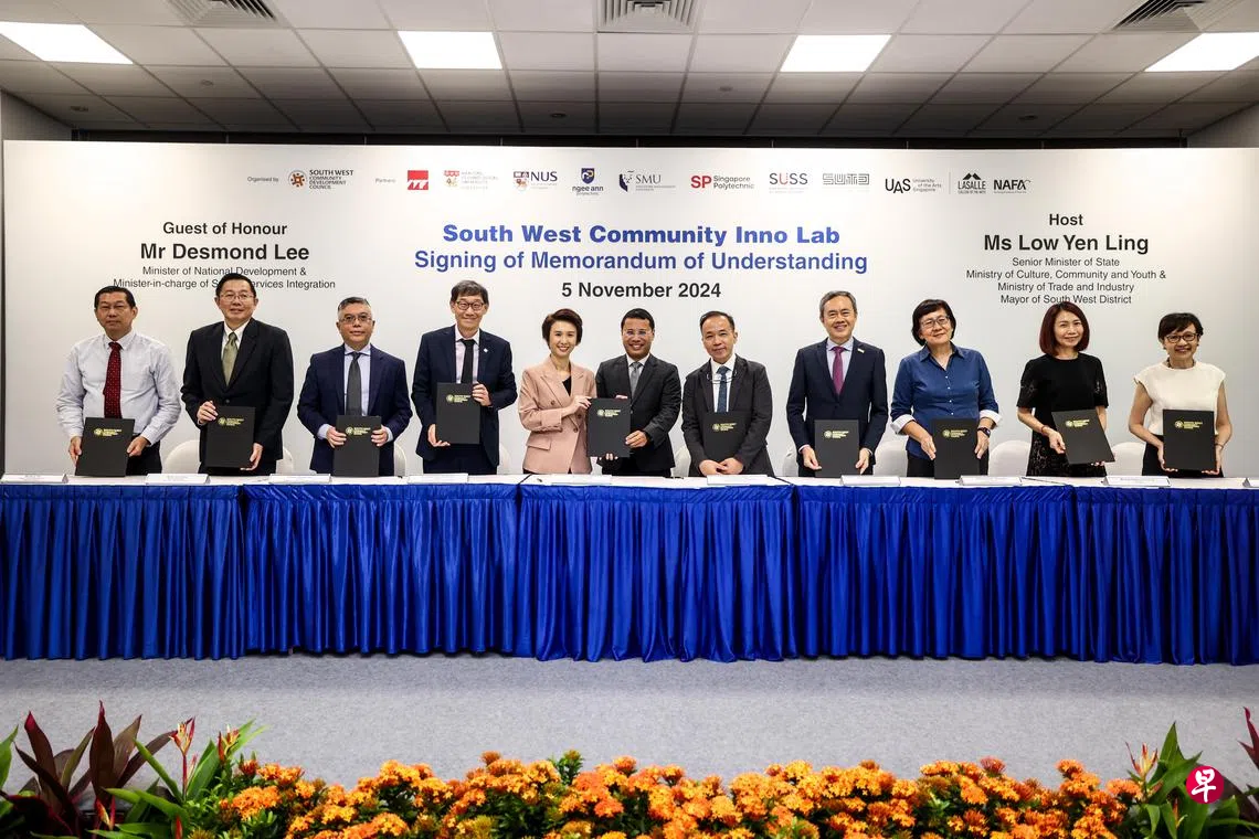 西南社区发展理事会星期二(11月5日)与九所高等教育学府签署谅解备忘录,设立区内首个创新实验室。不同学府的学生可以在实验室合作,试行创意点子,改善社区和居民生活。