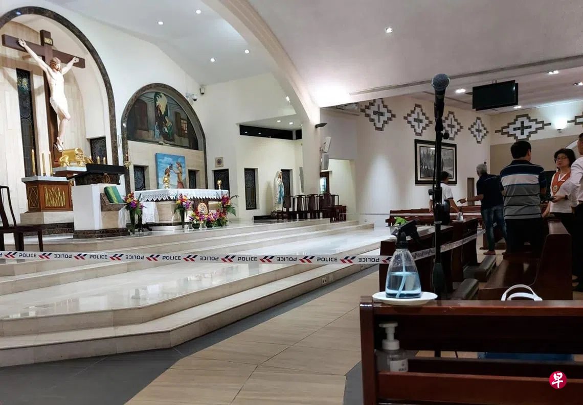 《联合早报》记者晚上约8时抵达现场时,警方已大范围拉起封锁线,限制人员和车辆进出。一辆犯罪现场调查车驶入,警方在晚上10时关闭铁闸门,截稿前仍有警员和教堂职员留在现场。