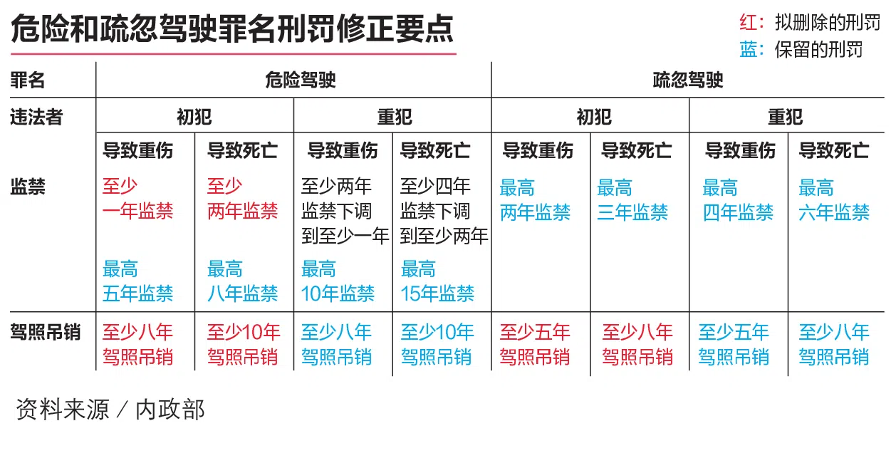 答:内政部受询时回应道,若发生违法行为,必将追究违法者的责任,而不会出现这样的情况。法庭可判处的最高刑罚不变,那些行为恶劣的公路使用者会面对严厉处罚。
