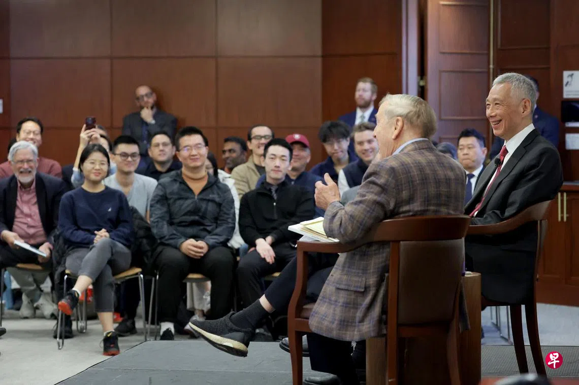 在美国进行工作访问的李资政,美东时间星期二(11月12日)中午(本地时间星期三凌晨1时)在哈佛大学的戈德金讲座(Godkin Lecture)发表演说,并接受出席者的现场提问。李资政在长约一个小时的活动上语调轻松,部分答复还引来全场会心一笑。