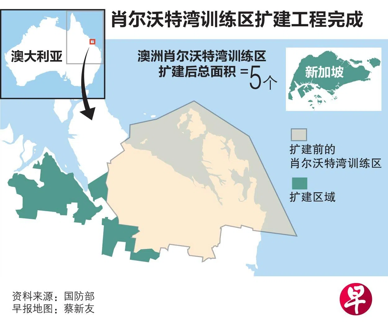 我国和澳大利亚共同开发的肖尔沃特湾训练区扩建工程完成,训练面积是新加坡土地面积的五倍,能为新加坡武装部队和澳洲国防部队提供一个高质量的训练场地,磨练作战能力和战备状态。