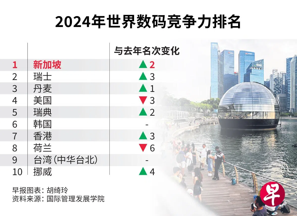 在最新出炉的世界数码竞争力排名中,新加坡名列榜首,较去年上升两位。这是时隔七年,新加坡重回榜首。