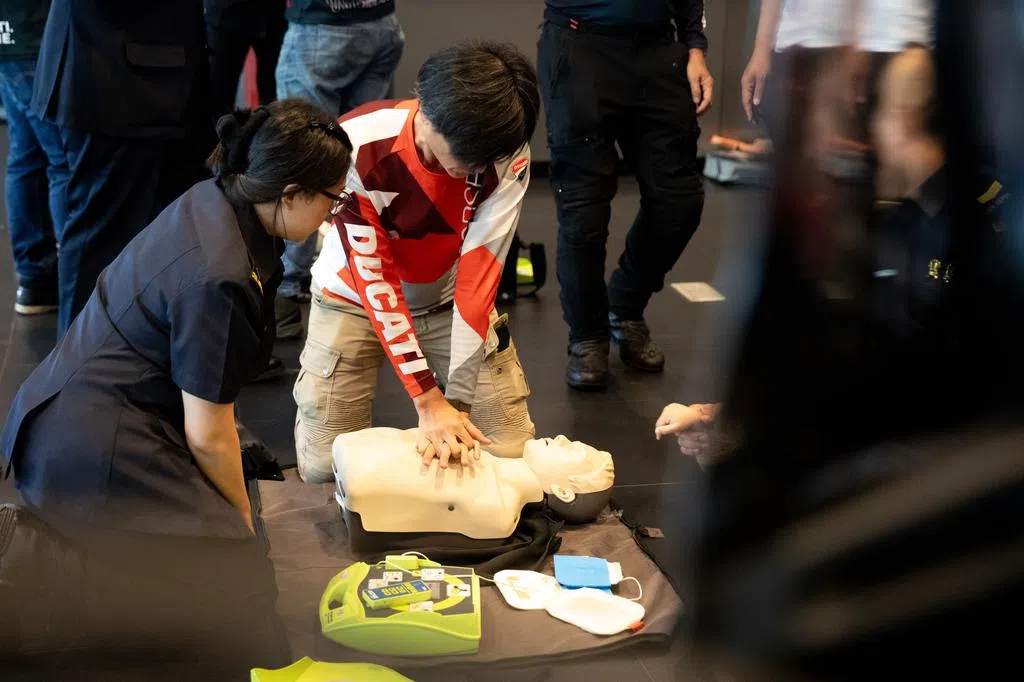 接受过紧急训练的陈宇翔上尉说,当时自己立刻采取行动,开始为对方进行心肺复苏,现场的民众也赶紧送来自动体外除颤器(AED)以及医药箱。