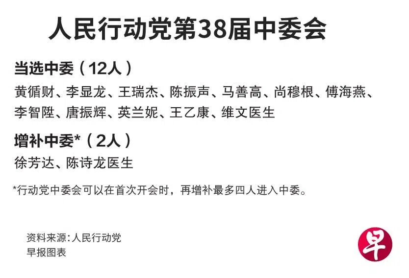 根据行动党党章,新一届中委会在两周至一个月内开会时,还可另外增补最多四人。届时,行动党中委会也会举行互选,决定中委的党职。