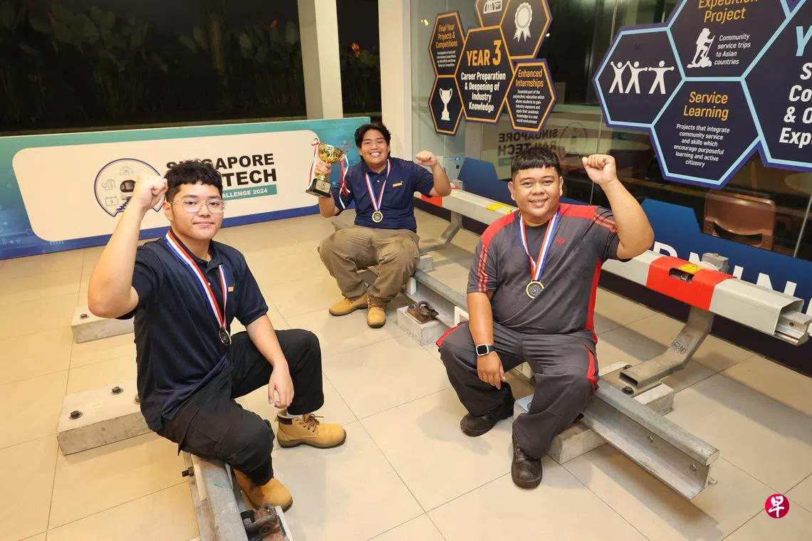 三人接受《联合早报》访问时说,他们在短时间内快速学习四项挑战的相关知识,特别是在学校和工作上未接触到的高速断路器。沙菲益说:“虽然我在这行已经很多年,但参赛让我意识到,还有很多是我不知道的,提醒自己学无止境,不能怠惰。”