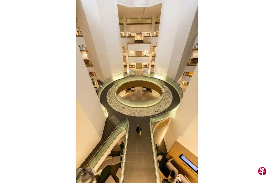 法院中庭的“甜甜圈”设计保留原建筑的独特风格,二楼的环形走道则保留约71平方米的大理石地砖。