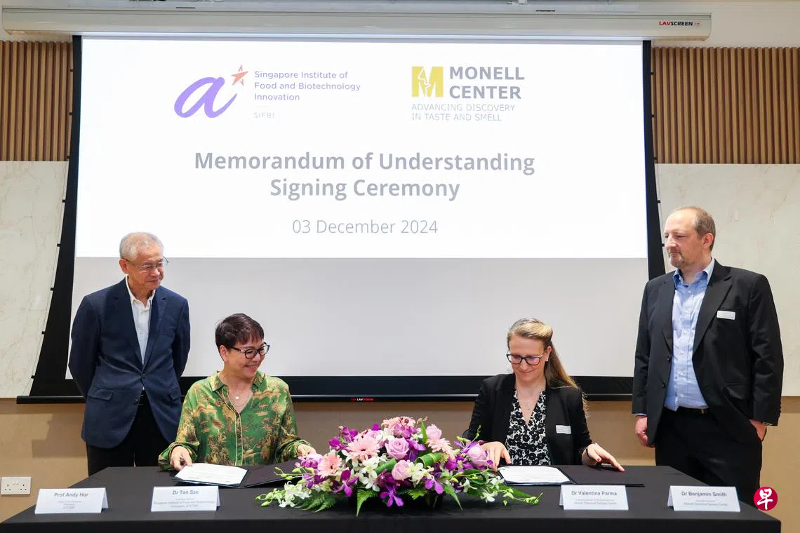 新加坡科技研究局(A*STAR)旗下的新加坡食品与生物技术创新研究院(SIFBI),星期二(12月3日)与美国莫奈尔化学感官中心(Monell Chemical Senses Center)签署为期五年的谅解备忘录。