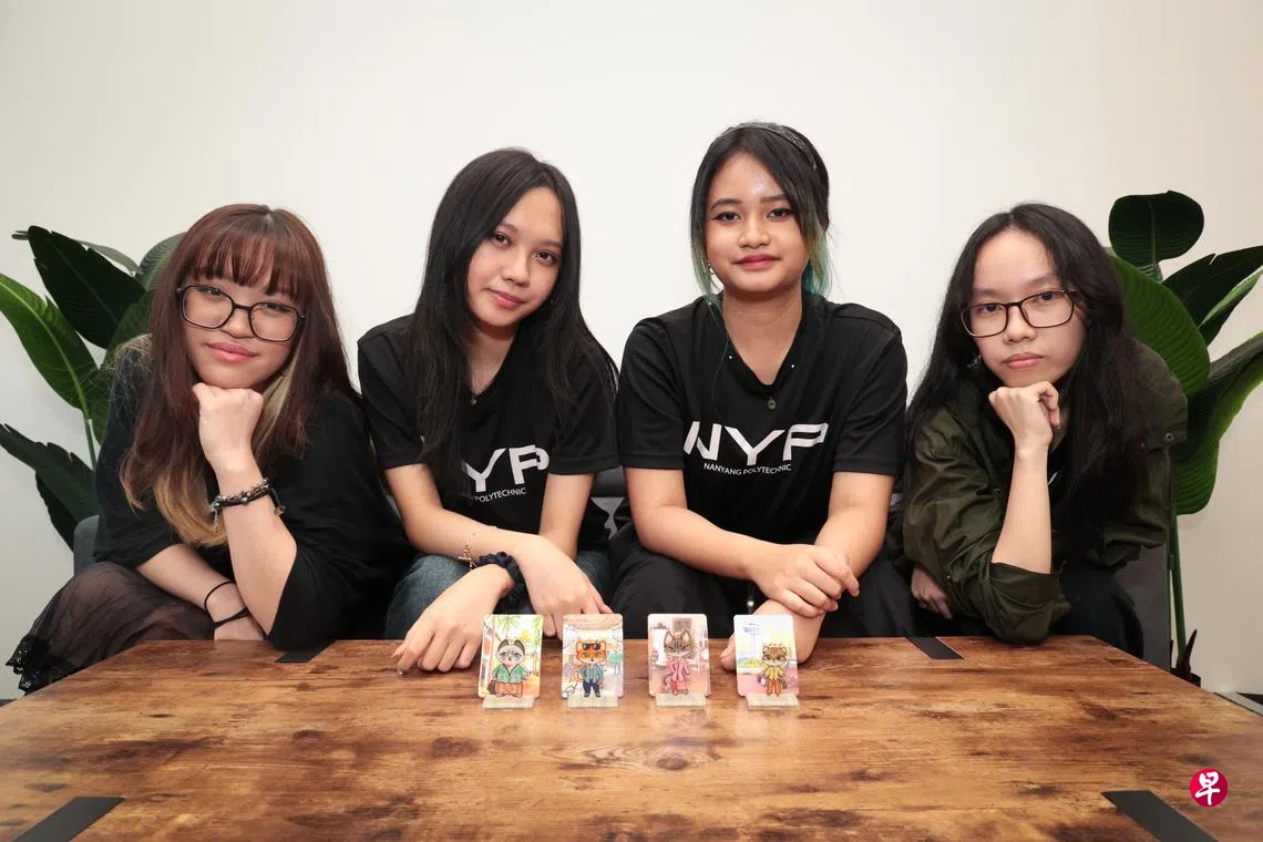 四名学生8月底开始构思,还走访多家卡峇雅商店汲取灵感,最终决定以广受欢迎的本土和海外猫品种为设计造型,呈现四款最常见的卡峇雅款式。每一款钥匙扣附上一张描绘本土景观的小卡片,如甘榜格南、小贩中心、樟宜机场等。卡片背面则有卡峇雅款式的介绍、穿搭建议,以及一个连接文物局Roots.gov.sg网站卡峇雅专页的QR码,让公众探索更多信息。