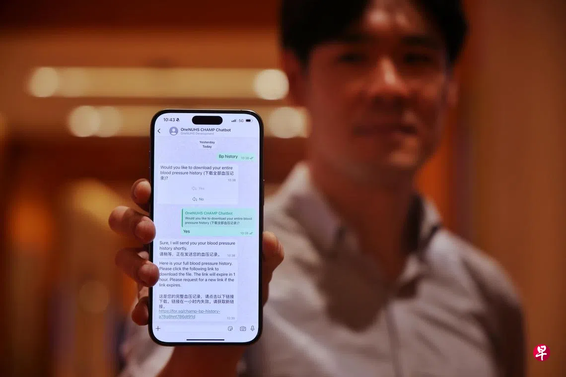 CHAMP首席研究员、国大综合诊疗所家庭医生李永恒受访时说,目前有超过9000名患者在使用这款生成式人工智能聊天机器人。