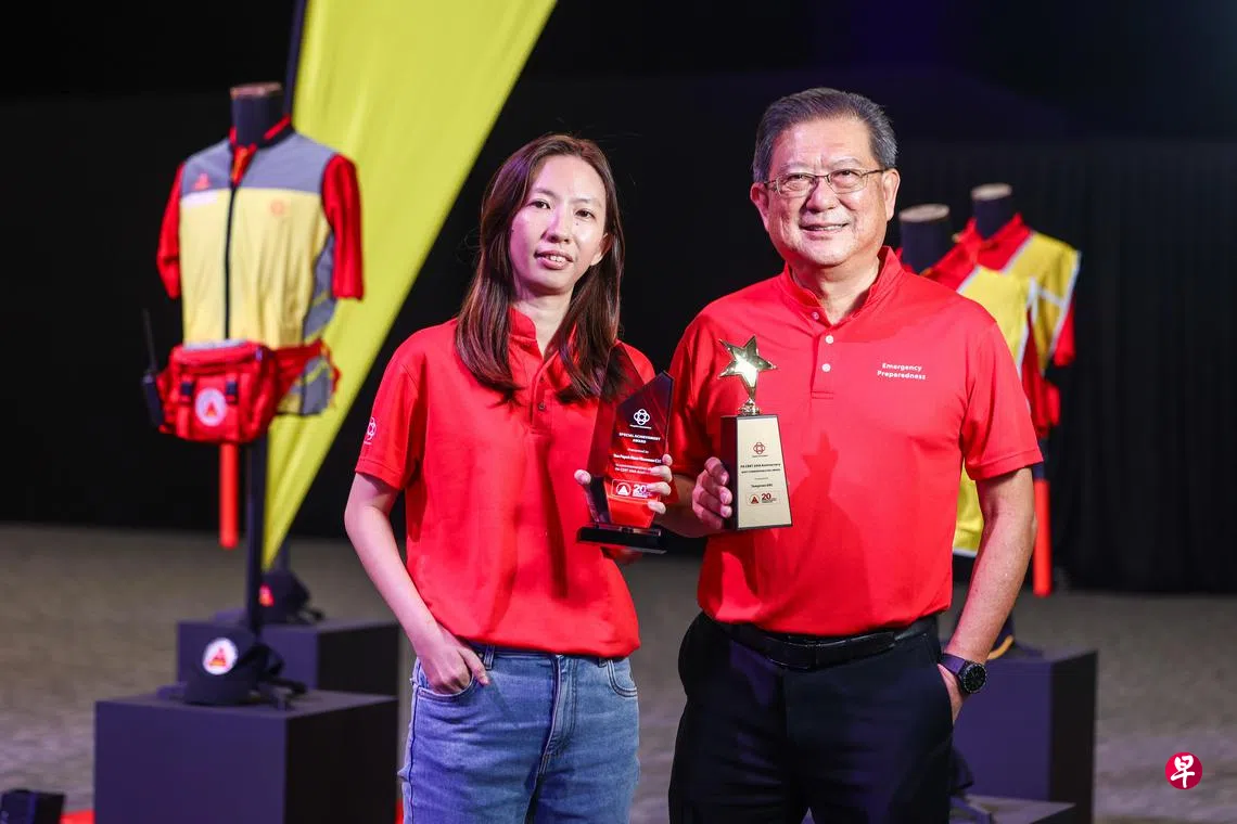 代表所属分区领取特别成就奖的大巴窑西—汤申社区紧急应策与参与委员会主席萧佩恩(40岁)受访时说,他们面临的一个挑战,往往是如何让居民意识到应急准备的重要性。