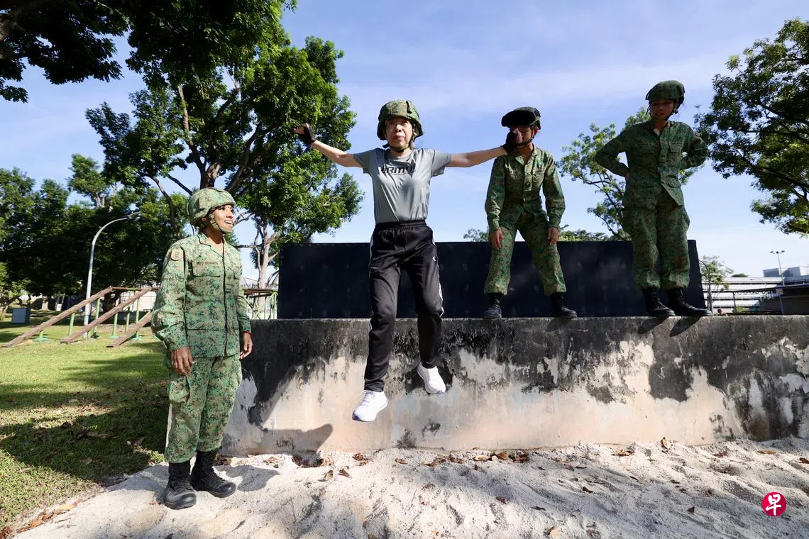 参加这次体验营的还包括一对母女。一级志愿军陈道晶(43岁,督察员)五年前加入新加坡武装部队志愿军团,负责这次活动的后勤工作。16岁女儿梁妡琳在耳濡目染下,主动报名参加女子军训体验营。