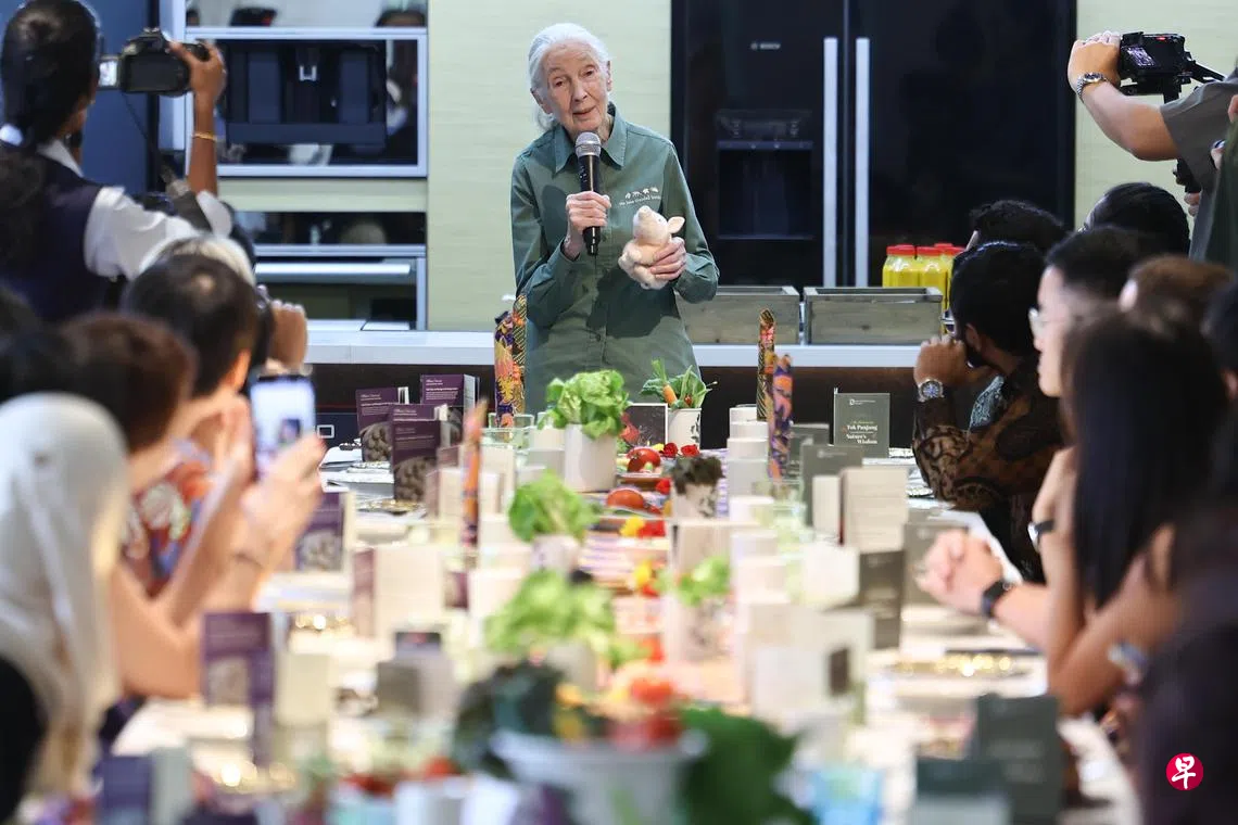 她星期六在红山的Allspice烹饪学院,参加推广可持续饮食的土生文化“长桌宴”(Tok Panjang)。她在接受提问时说,她2007年到新加坡设立珍古德教育与保育协会以来,在全球和新加坡都看到危机与希望。