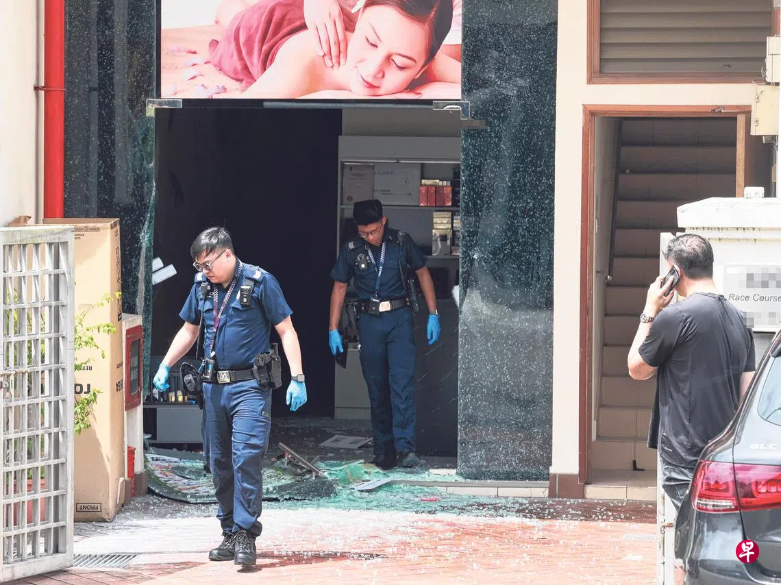 《新明日报》接获热心读者通报,于小印度一带跑马埔路(Race Course Road)一家按摩院的玻璃门,疑似被人砸碎,大批警员到场调查。