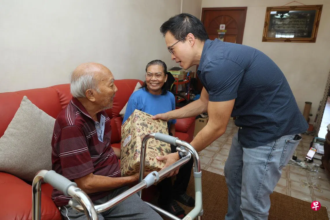 现年78岁的林福盛已退休多年,独自居住在一间三房式组屋,在尚育区生活了30年。兄弟姐妹住在附近,平时很少来探望,有事时才会联系。他受访时说:“收到这些礼物让我很开心,也很感谢附近护理中心的义工,他们经常来看我,十分照顾我。”