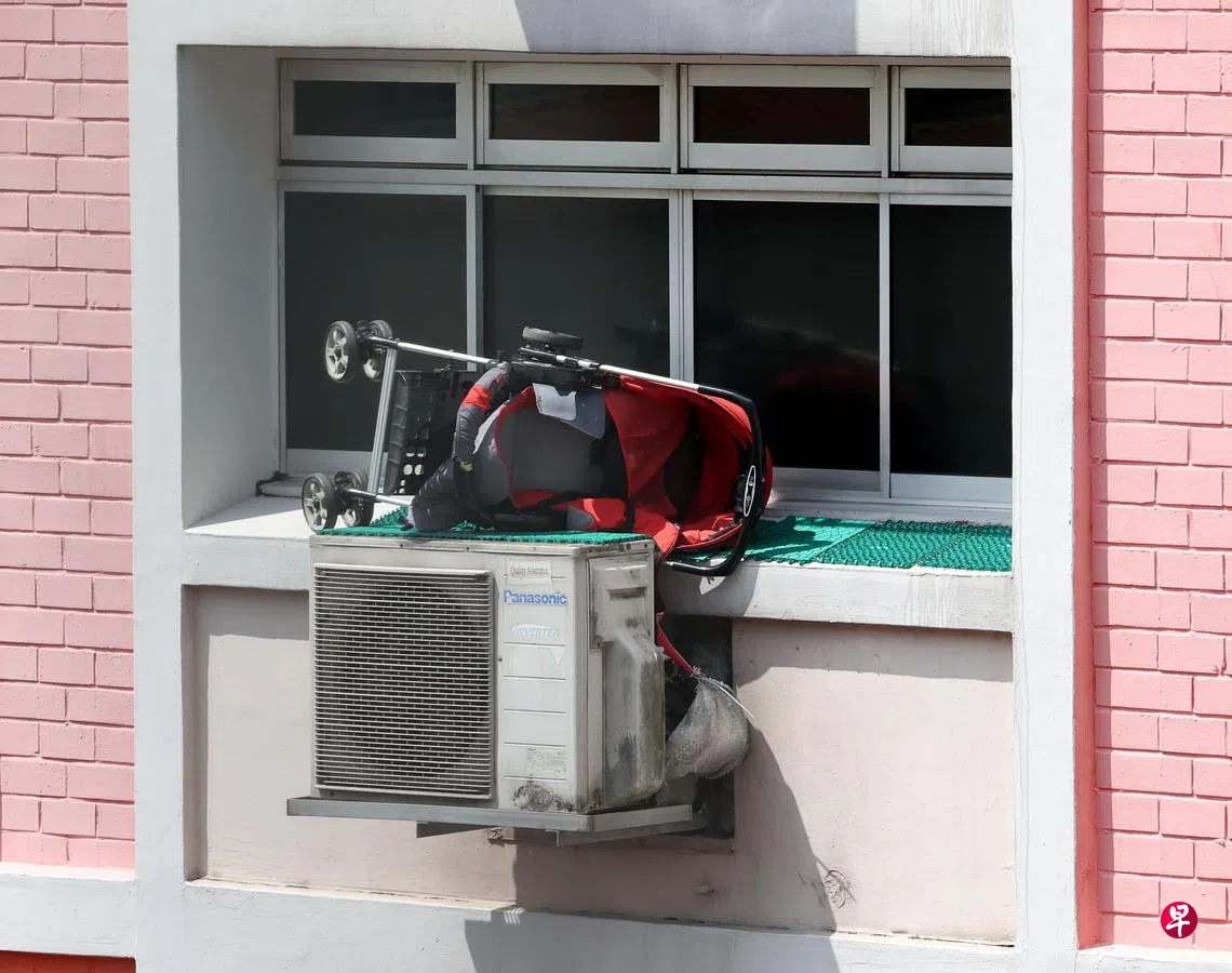 《新明日报》星期六(12月14日)接获一名住在蔡厝港北6道的居民通报,称她目睹有人将婴儿车放在第554座组屋10楼的冷气压缩机上,引发安全隐患。
