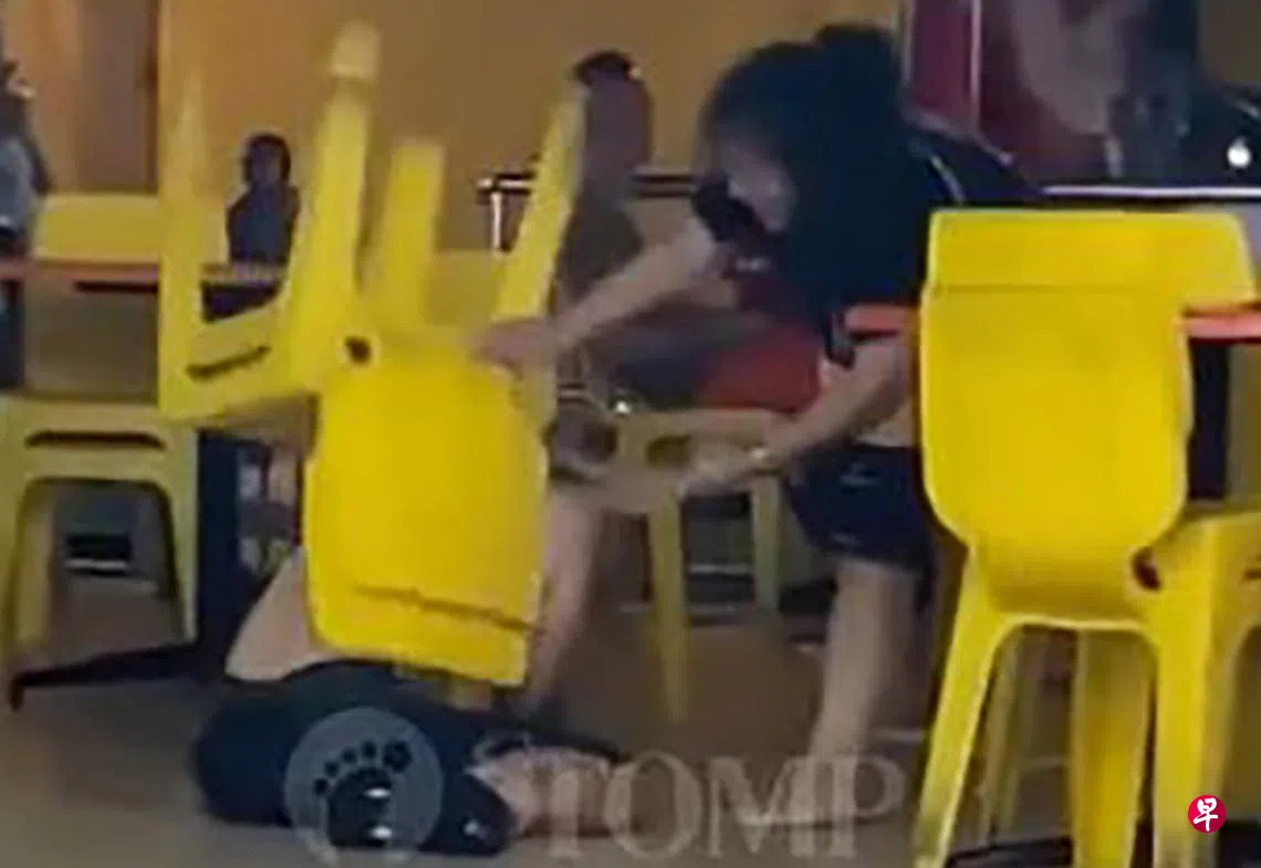 33岁悍女在咖啡店邀50岁长发叔一同喝酒,结果对方不领情,悍女一怒之下将啤酒倒在阿叔头上,两人互殴扭打倒地。悍女还拉阿叔马尾,拿椅子砸他头,周围公众吓得三度报警。
