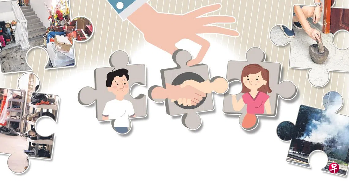 邻居闹意见,很多时候从小事开始,诸如电视机声量太大、隔邻的物件摆放到自己的“领土”、杂物堆满公共走廊、二手烟或焚香飘进屋里等。