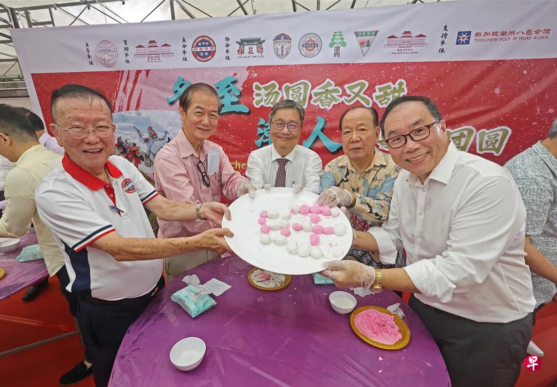 庆祝活动另一高潮是潮属会馆搓汤圆比赛,共有10支队伍参加,最后脱颖而出的是义安公司。