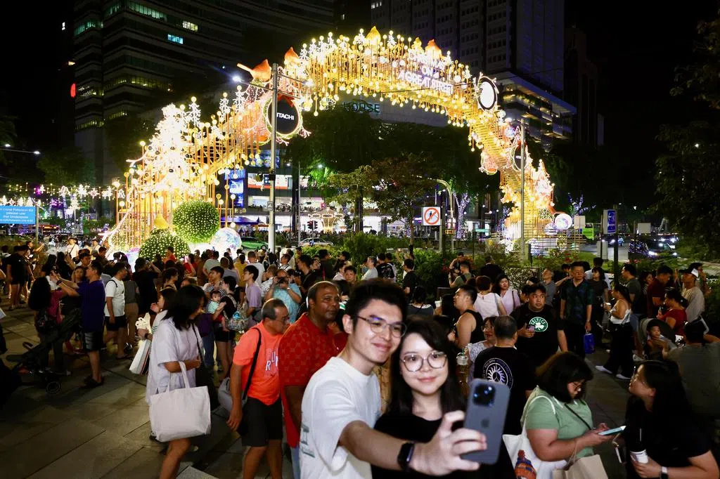 除了表演之外,现场还有圣诞集市和美食餐车,让公众可以边逛边吃。傍晚5时左右,乌节路开始下起小雨,不少公众纷纷躲到商场避雨,雨势随后停歇。