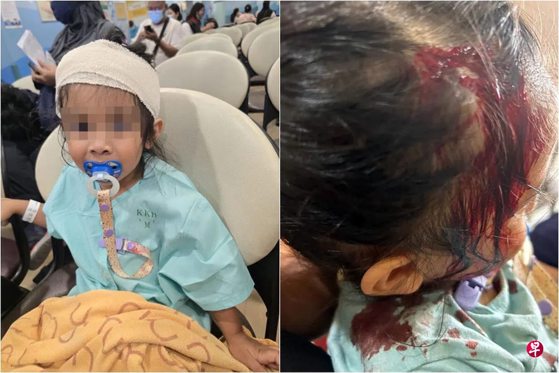 这起事件发生在12月24日上午11时许。妇女黄艺歆和女佣带着三名儿女到盛港东通道第172D和173A座组屋之间的游乐场,没想到一家人要离开时,两岁半女儿的头部突然遭铁钩击伤。