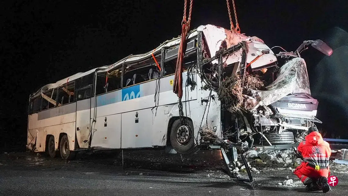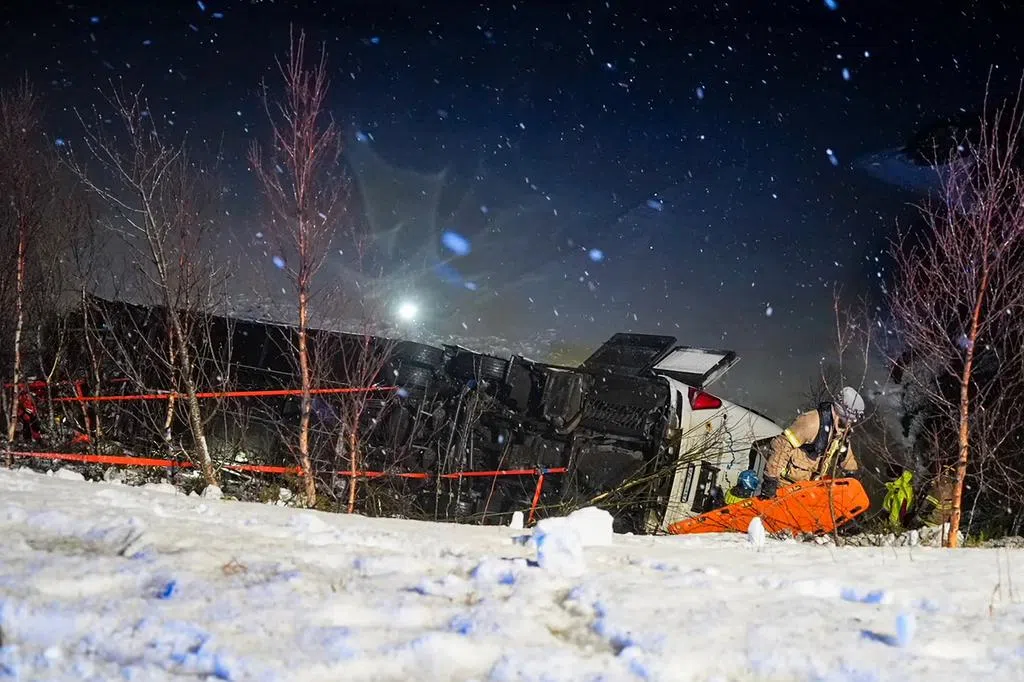 《新明日报》星期五(12月27日)报道,一辆载有新加坡等八个国家共58名乘客的挪威巴士,当地时间12月26日下午约1时30分在罗弗敦地区的E10公路失控偏离车道后侧翻,导致部分车身坠入湖泊中。