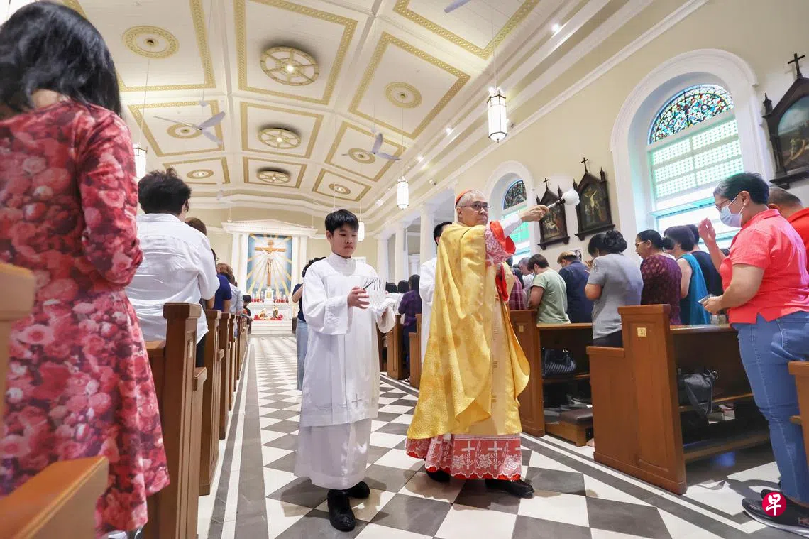 天主教新加坡总教区总主教吴诚才枢机星期六(12月28日)傍晚,在本地历史最悠久的天主教堂善牧主教座堂(Cathedral of the Good Shepherd)主持弥撒。