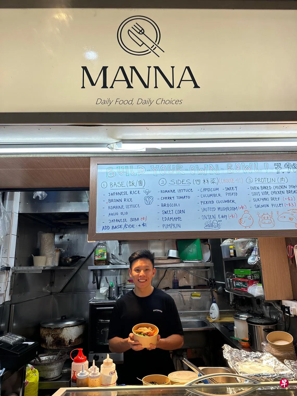 作为健身爱好者,他注意到市区的健康餐往往价格高昂,这让不少人却步。于是,他毅然辞去工作,投入三成积蓄,在雅柏熟食中心开设自己的平价健康餐档口,与父亲的鱼圆面摊为邻。
