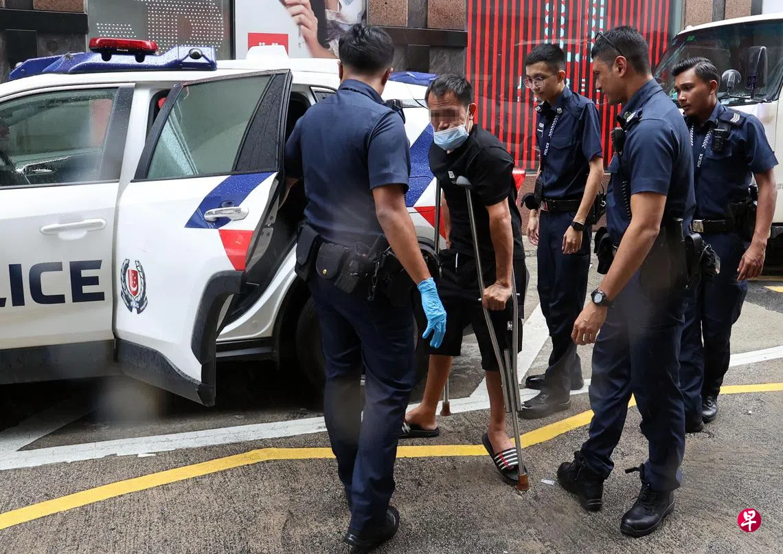 脸上长着拳头般大小的肉瘤,长短脚持着拐杖的外籍男子星期二现身四马路,以卖纸巾为名乞讨,记者目击短短10分钟内获“捐”50元,有公众觉得他形迹可疑当场报警。