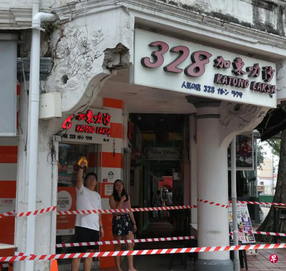 328加东叻沙第一代老板娘林露茜(61岁)告诉记者,店面是战前老店,他们承租已有24年,是他们的总店。“我早上9点多经过就看到有一些小石块掉下来,就快点通知现在打理生意的儿子,叫他快点通知业主来看。”