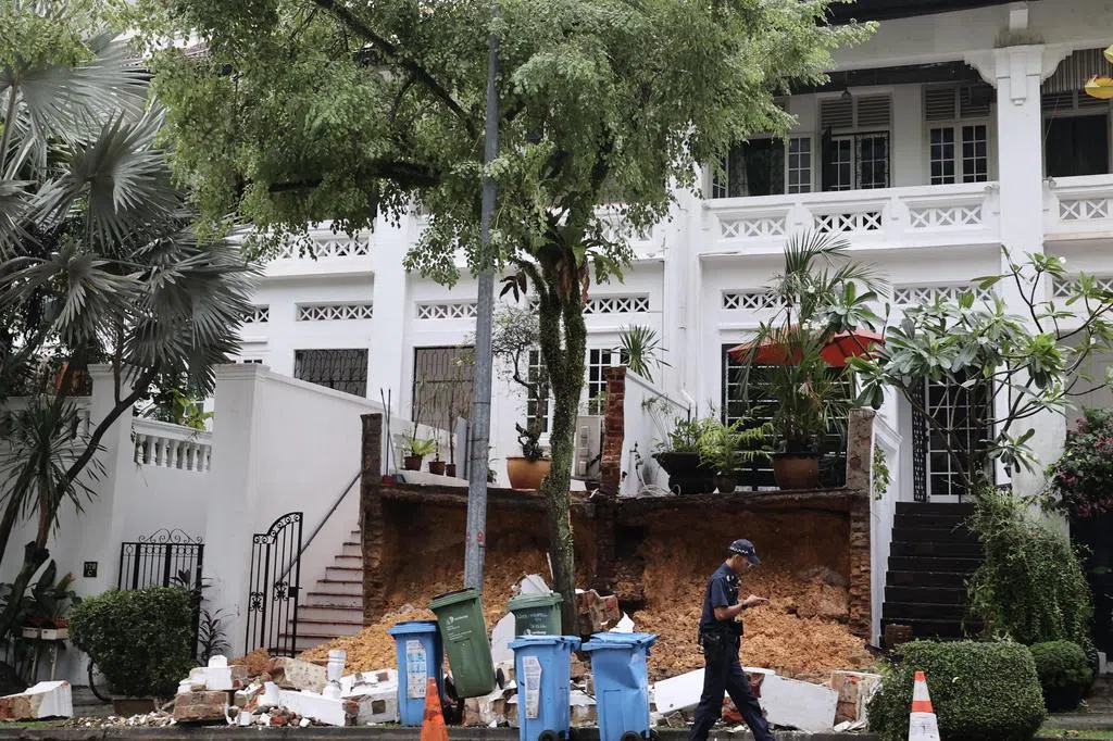 记者下午2时许赶到现场时,阳台下的区域仍被封锁,禁止民众经过,左右两侧的桌椅也被收起,不允许食客入座用餐。不过叻沙店照旧营业,店内仍有不少食客用餐。