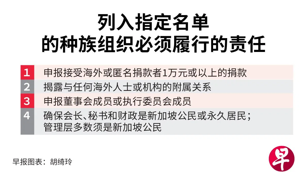 内政部说,早前已与种族组织联系,它们大多对其义务责任和申报要求表示支持,有的针对所需披露的信息要求更清楚的指示。当局日后会联系受影响的组织,引导它们履行要求。内政部届时将公布这些指定组织的名单。