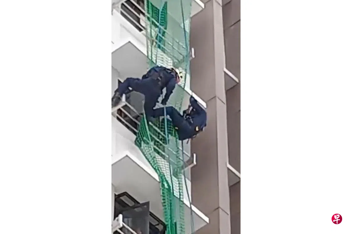 新加坡民防部队受询时说,他们接获一起求助通报,为安全起见,民防人员在现场放置安全气垫和撒网,灾难拯救队(DART)过后救下一人。