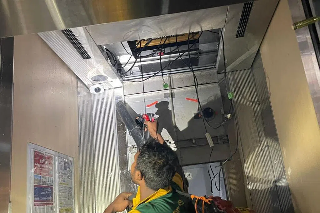 《新明日报》记者星期一早上走访时,其中一部电梯已从星期天起恢复运作,另一部仍在维修。电梯外部墙也贴有多张电梯暂停使用的告示。