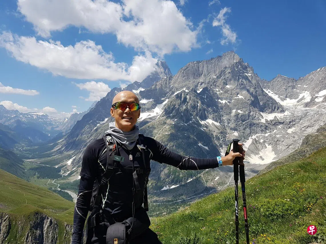 最让他难忘的是2018年徒步环勃朗峰(Mont Blanc)。勃朗峰是阿尔卑斯山最高峰,横跨法国、意大利,以及瑞士三国。
